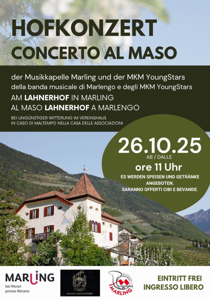 Herbstliches Flair die urige Kulisse des Lahnerhofs haben unser Hofkonzert zu einer unvergesslichen Zusammenarbeit im Zeichen der Jugend gemacht. Am Sonntag, den 26. Oktober traten neben der Musikkapelle Marling auch unsere Musikschüler, die ‚MKM Youngstars‘, auf. Ein gemeinsames Stück zeichnete…